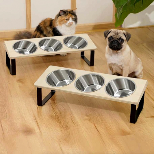 Elevated Tilted Cat Feeder Stand with 3 Stainless Steel Bowls