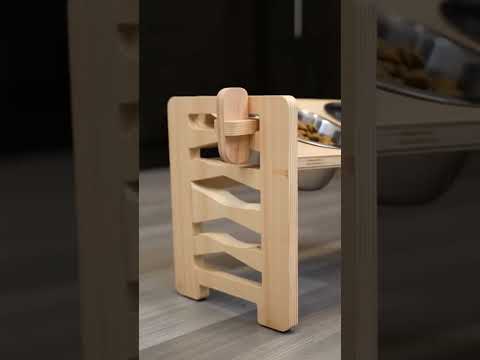 Adjustable Elevated Wooden Pet Feeder Stand with 2 Stainless Steel Bowls