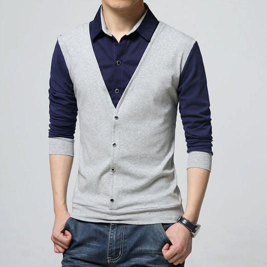 Mens Mandarin Collar Long Sleeve Button Front Shirt