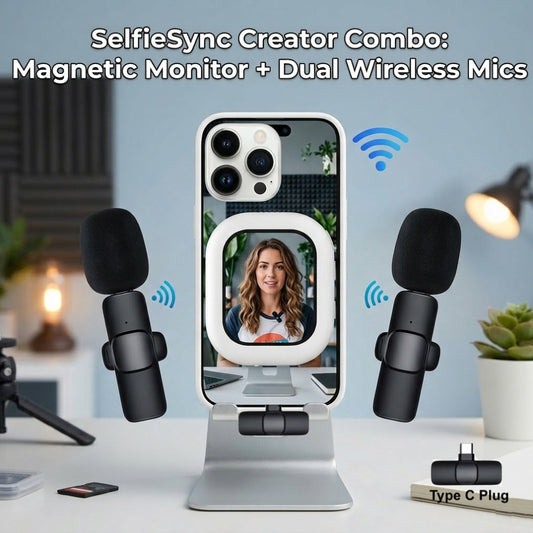 SelfieSync Creator Combo: Magnetic Monitor + Dual Wireless Microphone set