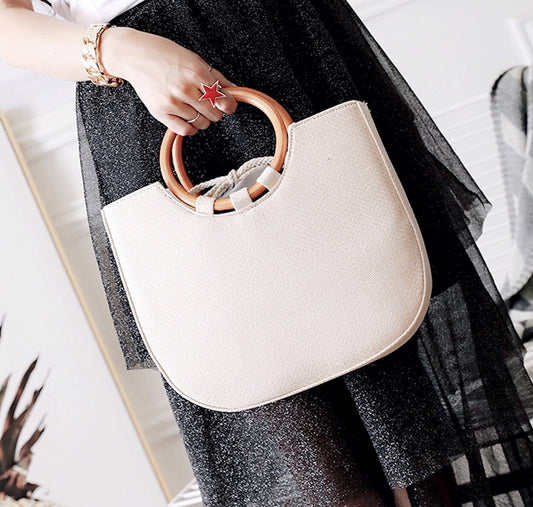 Straw Tote with Round Wooden Handles