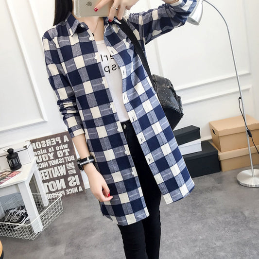 Womens Mid Length Plaid Shirt With Pockets