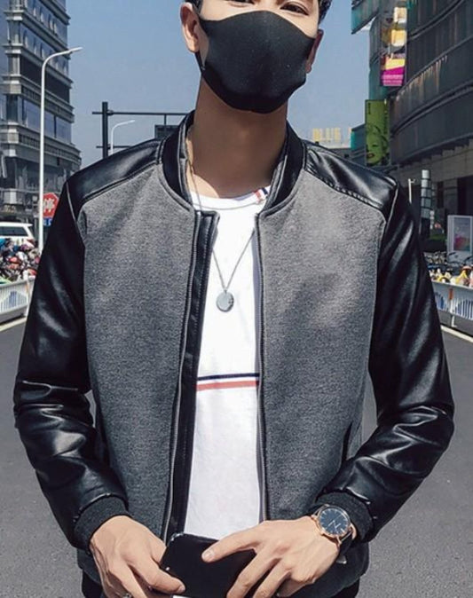 Mens Bomber Jacket with Vegan Leather Sleeves