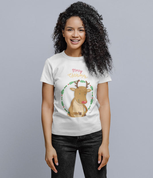 Womens Reindeer Holiday Short Sleeve Tee
