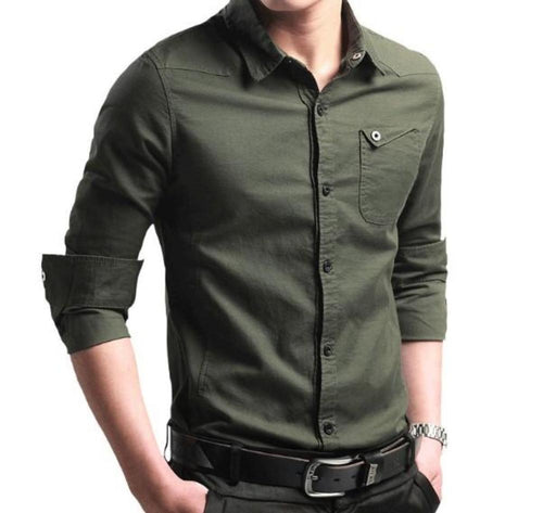 Mens Casual Long Sleeve Untuck Button Front Shirt