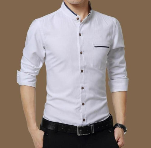 Mens Mandarin Collar Long Sleeve Button Front Shirt