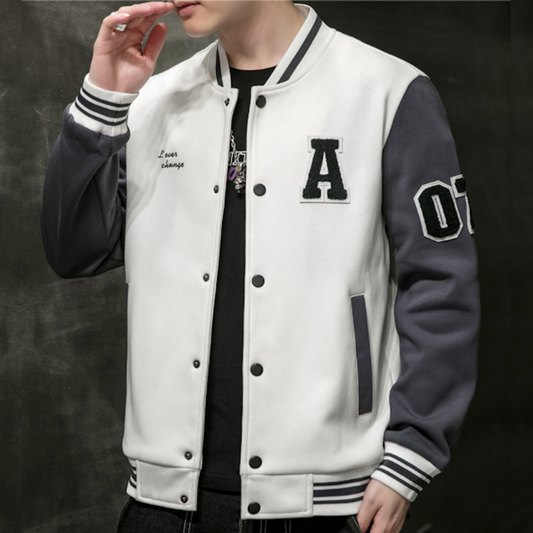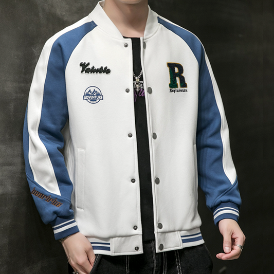Mens Oversize Two Tone Embroidery Patch Baseball Jacket