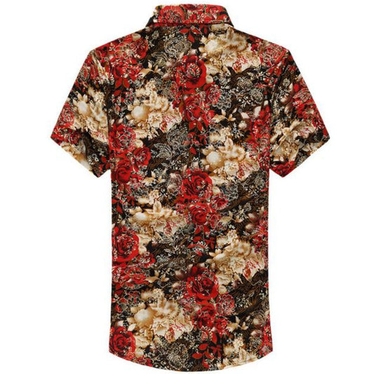 Mens Short Sleeve Button Front Checkered Shirt in Red