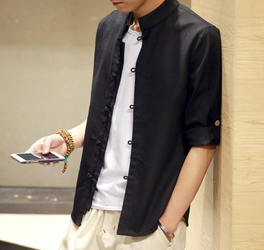 Mens Light Blue Stand Collar Shirt with Pocket Details