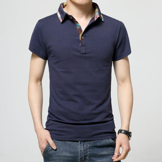 Mens Short Sleeve Button Front Checkered Shirt in Navy