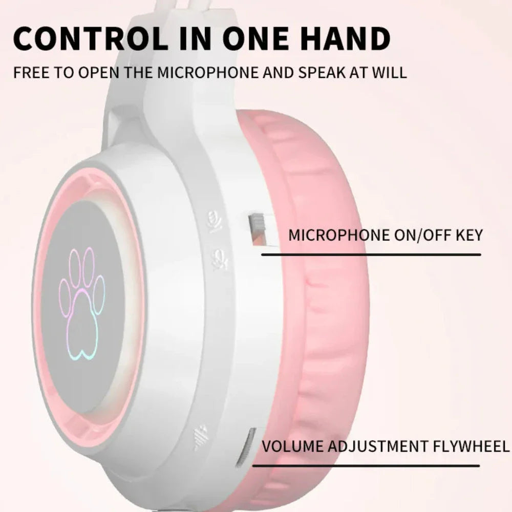 Animated Theme Wired LED Cat Ears Headphones - Unleash Your Inner Feline with Animated LED Cat Ears Headphones!