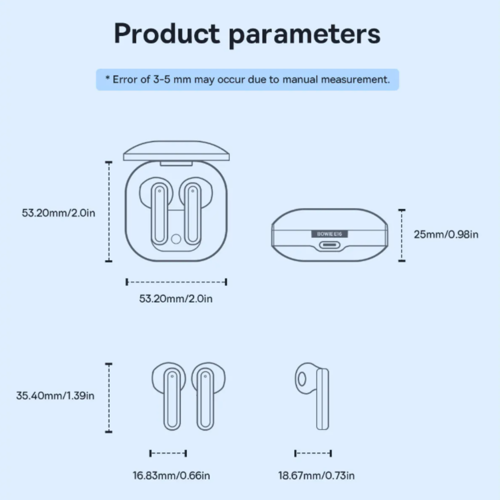 The E16 Bluetooth 5.3 Earbuds are engineered for audiophiles and casual listeners alike. With advanced Bluetooth 5.3 technology, these earbuds deliver crystal-clear sound and an immersive audio experience that brings your favorite music to life. Enjoy deep bass, crisp highs, and a balanced sound profile that enhances every note, making your listening experience truly unforgettable.