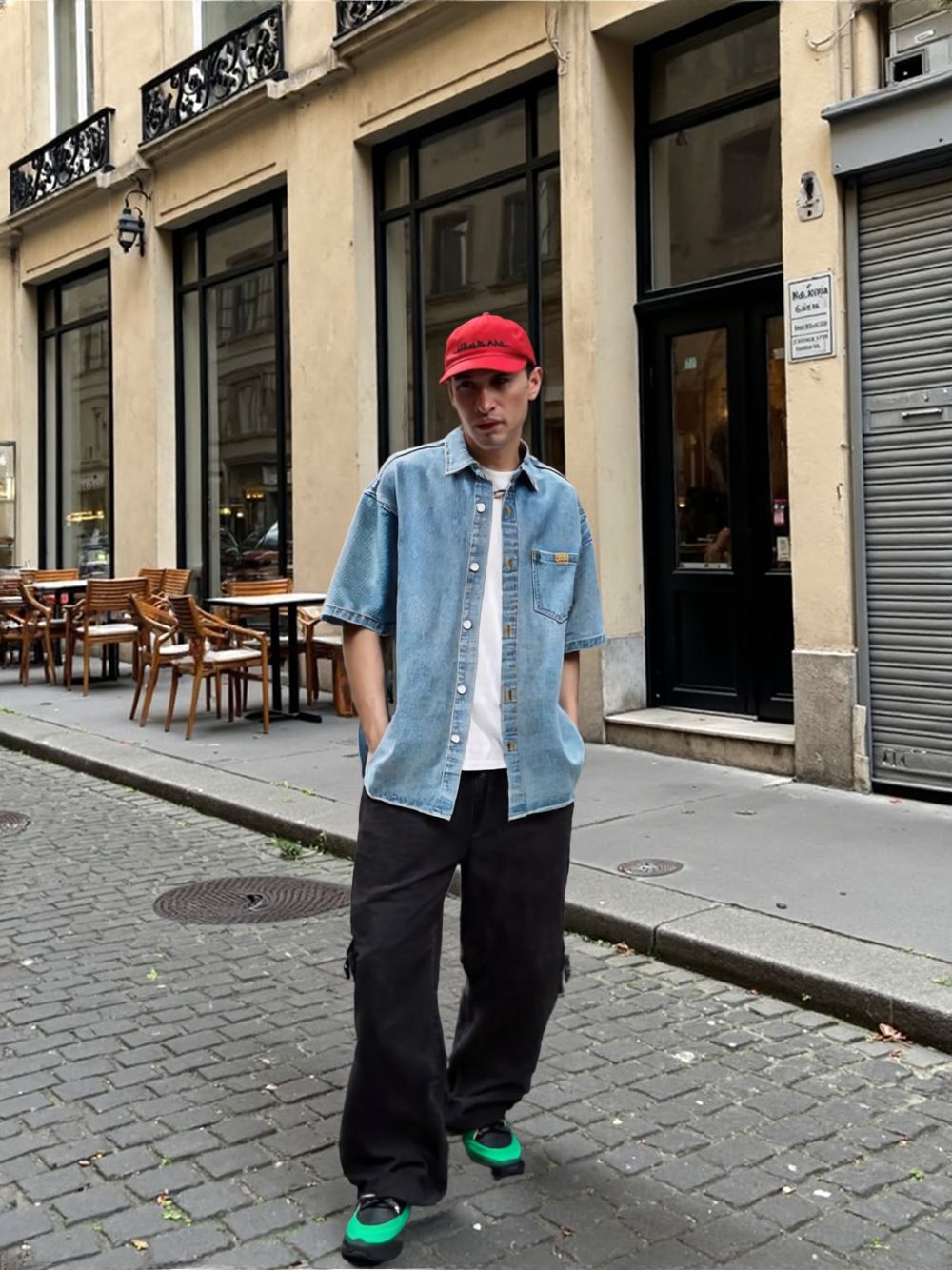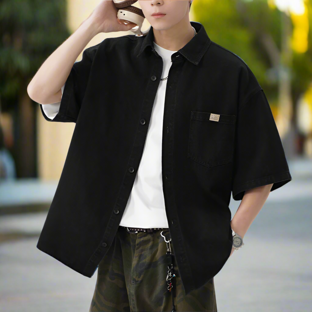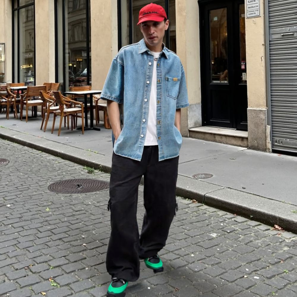 Upgrade your casual style with the Men’s Oversized Washed Denim Short Sleeve Shirt, designed for effortless cool. Available in light blue, dark blue, and black (M-2XL), it’s the ideal choice for a laid-back yet polished smart-casual look.