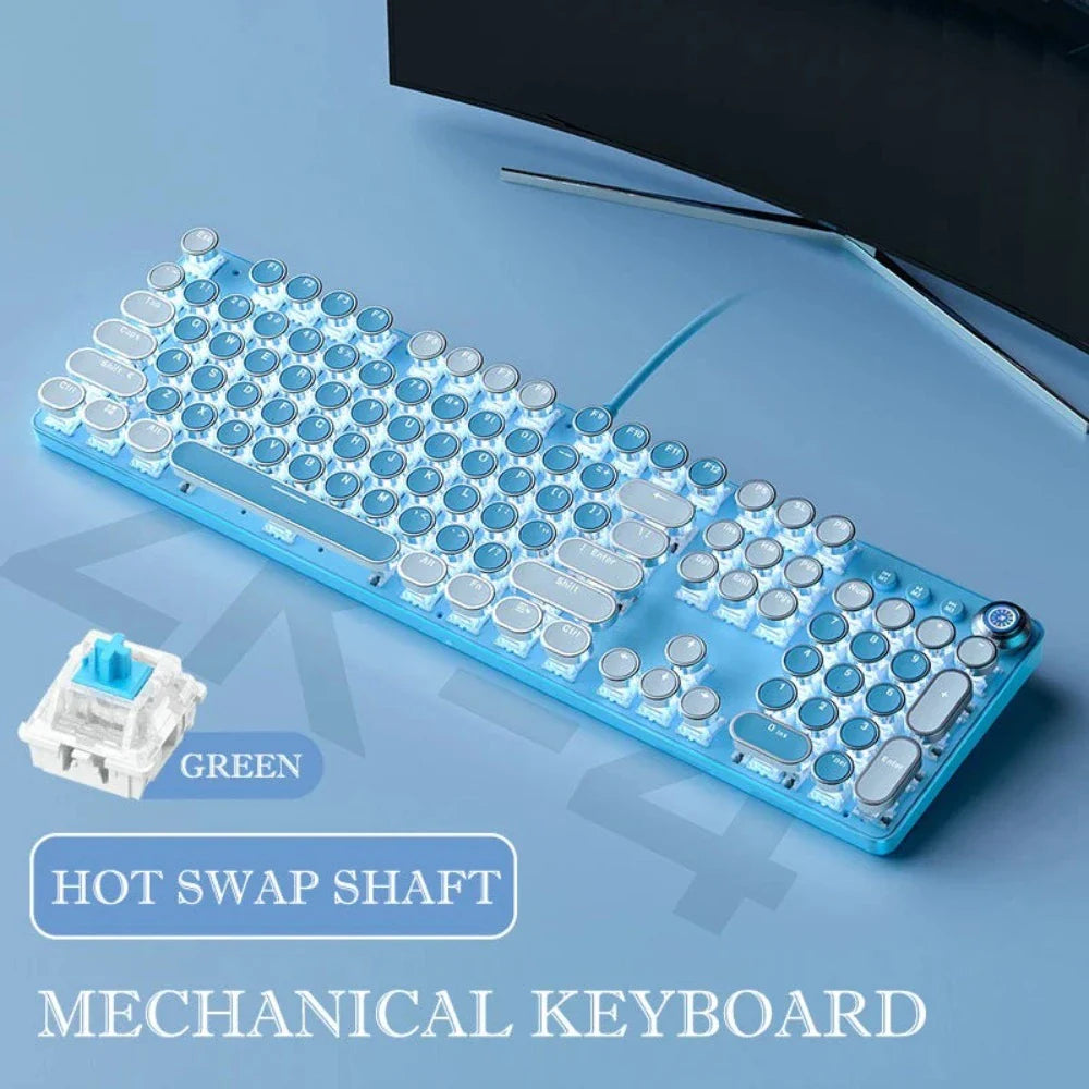 Transform your typing experience with our Pink and Sky Blue Theme Round Keys Retro Mechanical Keyboard! Its vibrant color scheme and round keys make typing a breeze while adding a touch of nostalgia. Type in style and stand out from the crowd with this unique and functional keyboard.