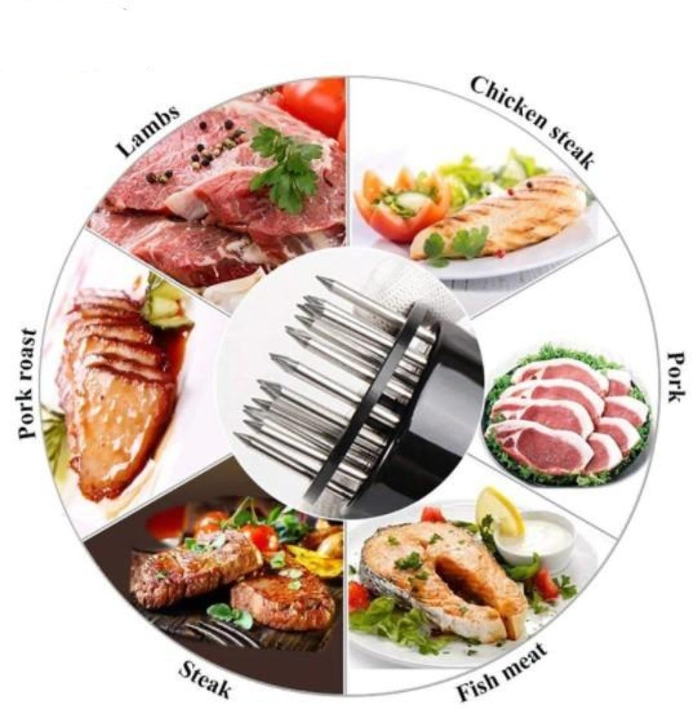 The professional stainless steel meat tenderizer keeps the shape and appearance of the meat by creating tiny aisles in the meat and to reduce the cooking time by up to 40% and helps maintain the original taste and flavor.