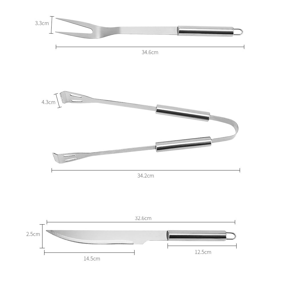 - Premium quality 3 piece camping and BBQ cooking utensils