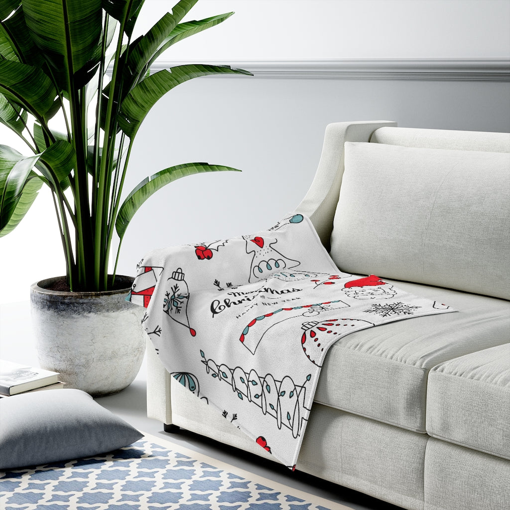 Create a cozy warm atmosphere at home with this plush Christmas Theme velveteen blanket. It is soft to touch and perfect for any home. A perfect gift to your friends and family.