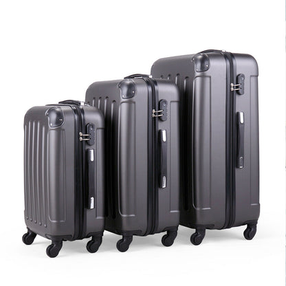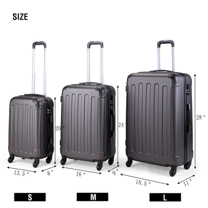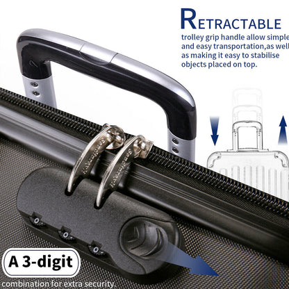 Heavy Duty 3 Piece Lightweight Travel 360° Rolling Suitcase in 3 sizes, 20” 24” 28”. 3 different size to meet all your traveling needs, featuring telescopic handles and coded lock. Easy to clean.