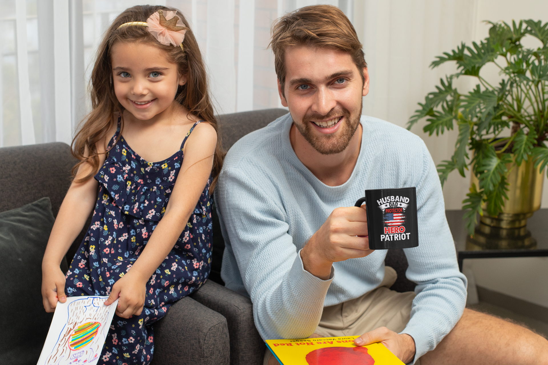 Husband, Dad, Protector, Hero, Patriot Mug. Perfect for coffee, tea and hot chocolate, this classic shape white, durable ceramic mug.
