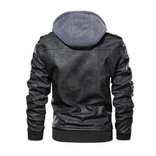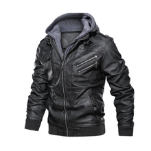 Stay stylish and protected with our Mens Hooded Faux Leather Biker Jacket. Crafted from high-quality vegan leather, it offers durability and comfort for everyday wear. The windproof inner lining shields you from chilly gusts, while the removable hood adds versatility to your look. Designed with a regular fit and available in XS to L, this jacket is perfect for enhancing your street style with a modern, eco-friendly edge.