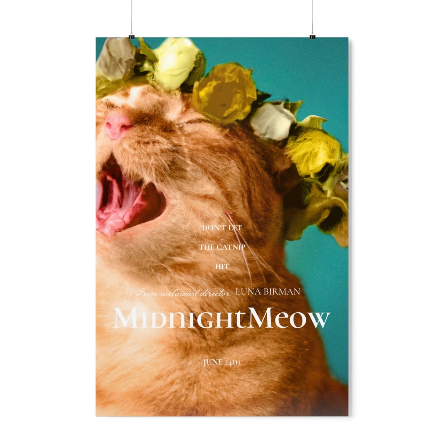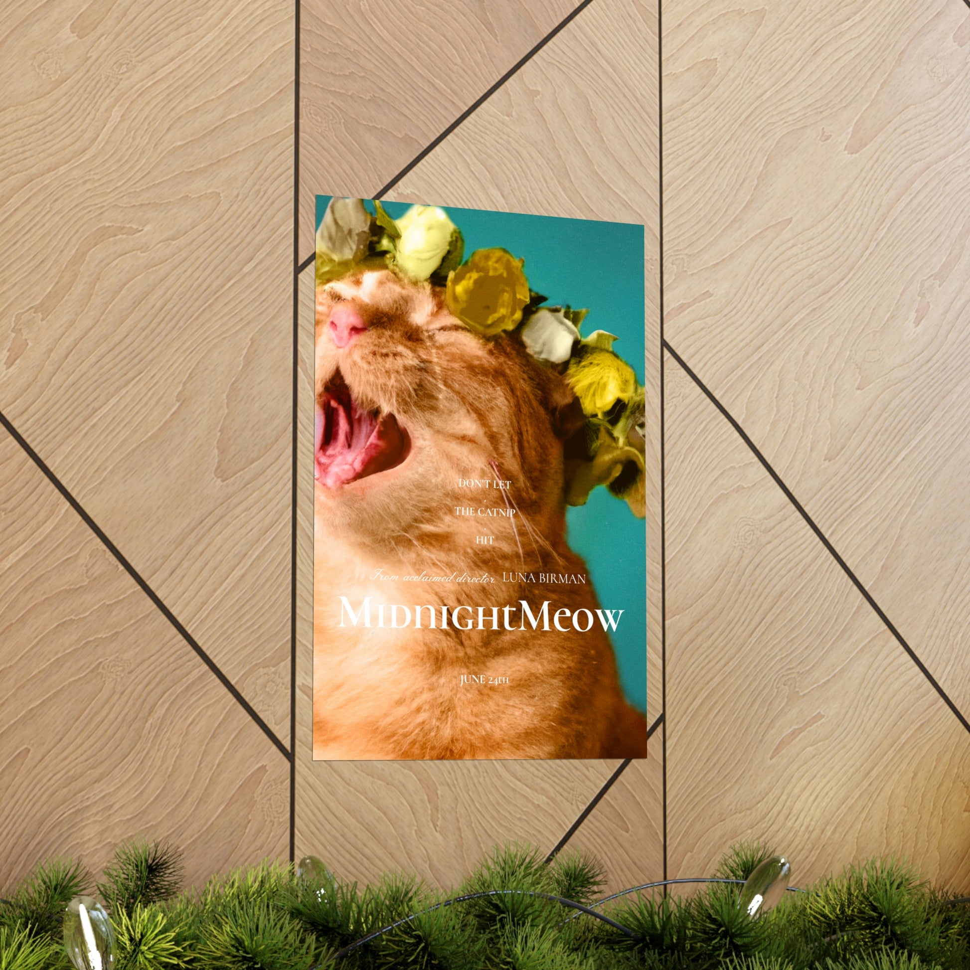 Midnight Meow Cat Movie Poster Premium Matte vertical posters produced with premium quality 175 gsm fine art paper. Every room deserves to be special. These supreme quality print posters in various sizes serve as statement pieces, creating a personalized environment.