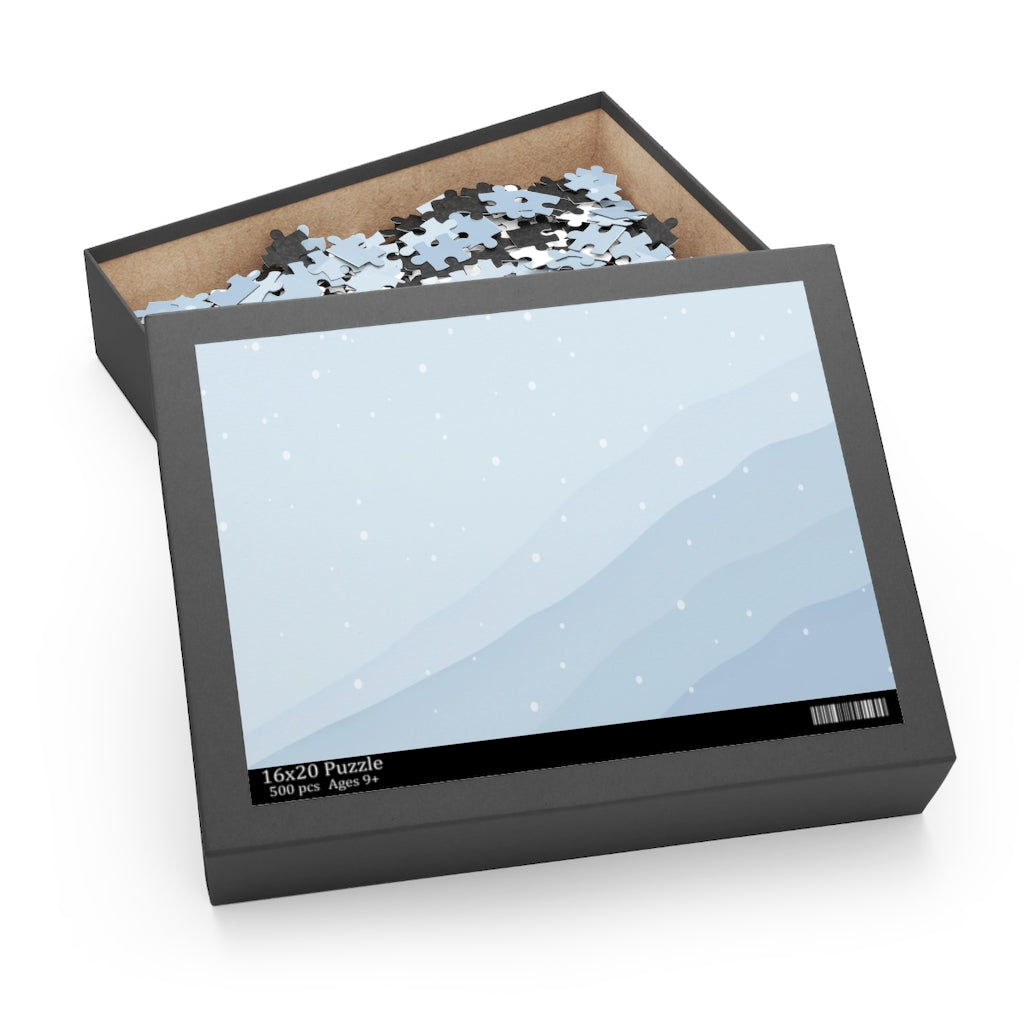 Snowy Blue Landscape Jigsaw Puzzle 500 pieces, are the perfect downtime activity for friends & family. This jigsaw puzzle is made with high-quality chipboard pieces and ships in a gift-ready box.