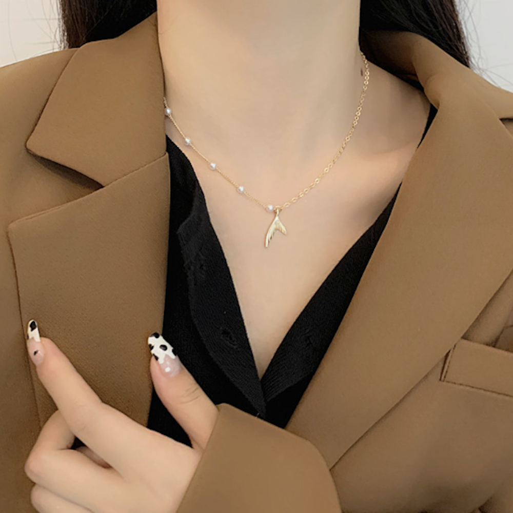 Womens Mermaid Necklace with Faux Beaded Pearls