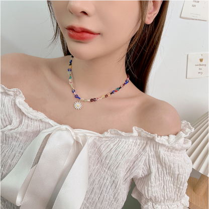 This Rainbow Beaded Necklace With Daisy Pendant is a must buy item for your summer collection, don't miss it!