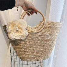This straw bag adds a playful look to your summer outfits, with a pop of color. Featuring a single daisy and wooden handles.