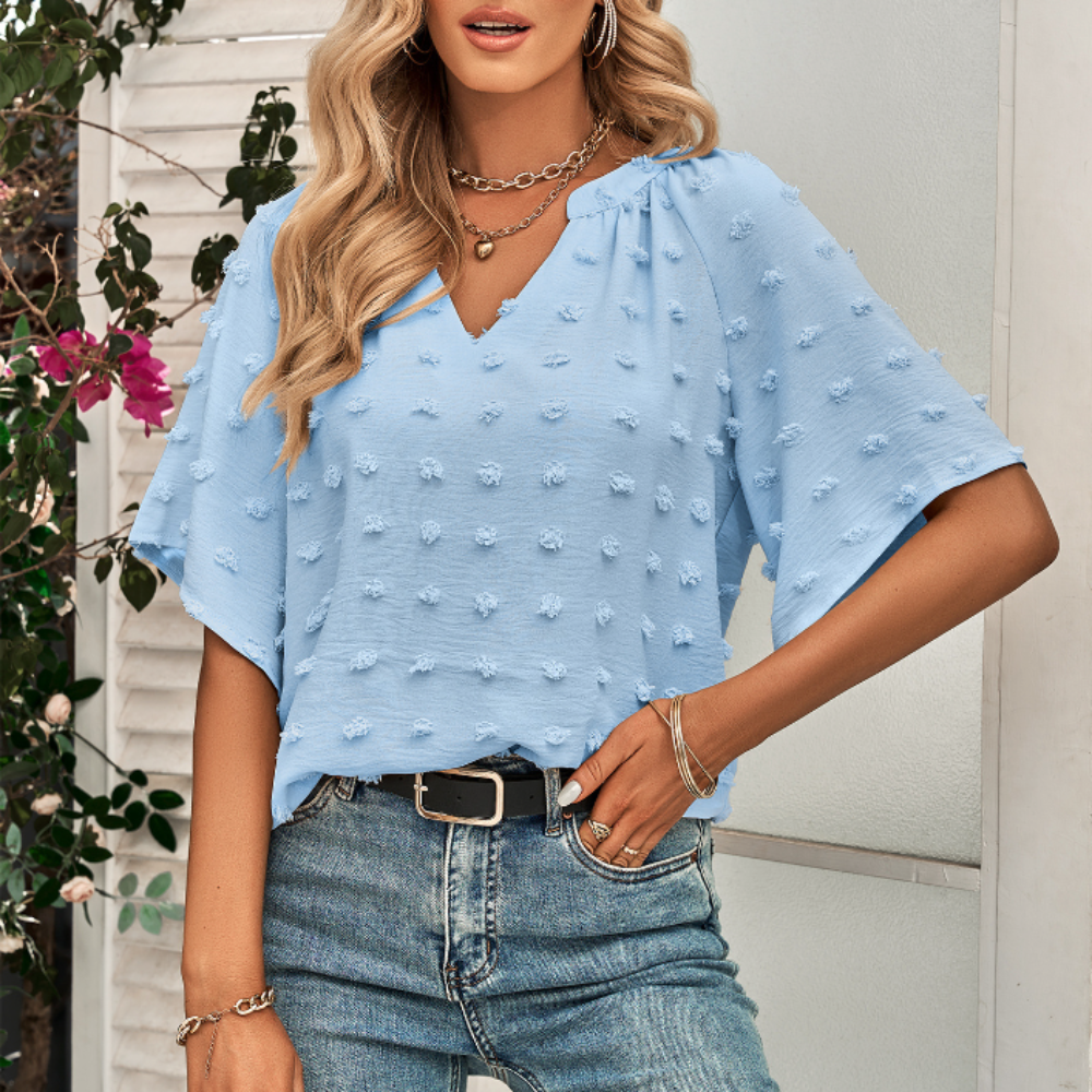 Look stylish and stay cool this summer with our V Neck Batwing Chiffon Top. Perfect for a day at the beach, this trendy piece is sure to be a hit. Crafted with lightweight chiffon, it provides an airy and comfortable fit. Enhance your wardrobe today with this must-have look!
