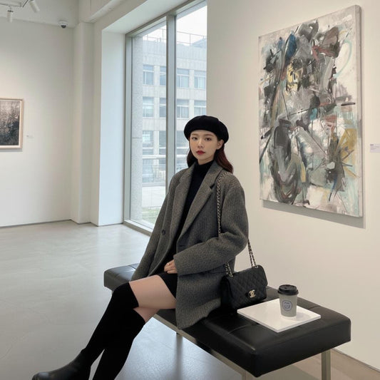Womens Double Breasted Gray Checkered Blazer