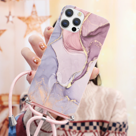 Marble Painting Phone Case With Crossbody Strap For iPhone