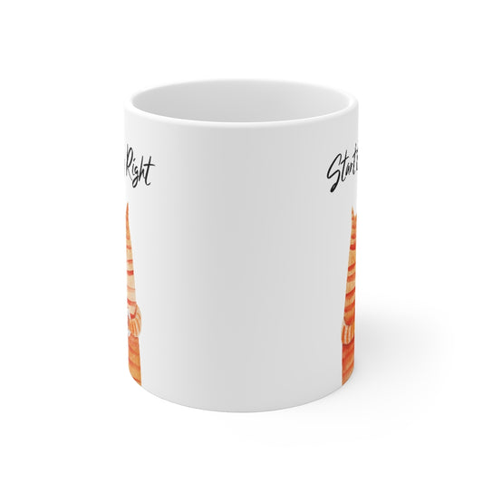 Start the Day Right Cat Holding Goldfish Coffee Tea Mug