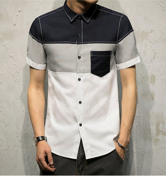 Mens Light Blue Stand Collar Shirt with Pocket Details