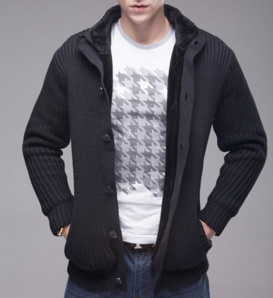 Mens Winter Ultra Warm Inner Faux Fur Cardigan