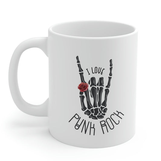 I Love Punk Rock Skeleton Hand Mug