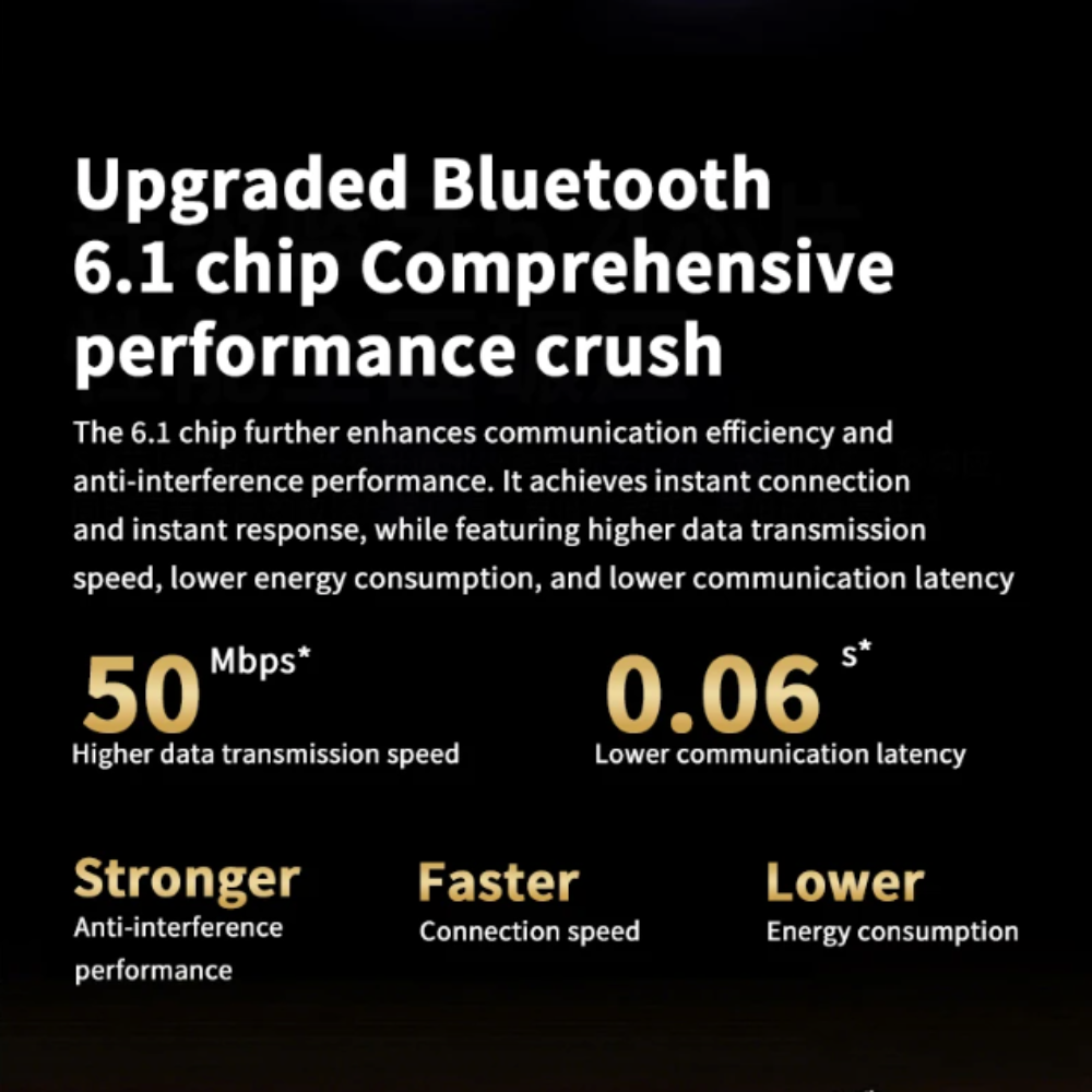 Powered by Bluetooth 6.1 for ultra-stable signals, lower power use, and lightning-fast transmission. Up to 6 hours of playtime per charge with fast charging support ensures you're always connected and ready for extended listening sessions.