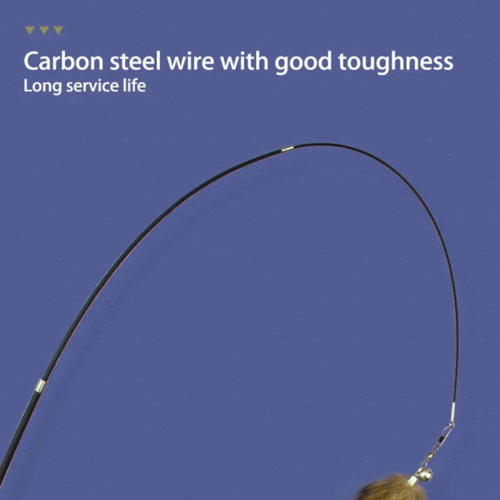 Crafted with tough carbon steel wire, this cat toy stick ensures long-lasting use and flexibility for free jumping. Its 3-section stretchable design with a comfortable sponge handle allows for extended play sessions, providing durability and ease of use for both cats and owners.