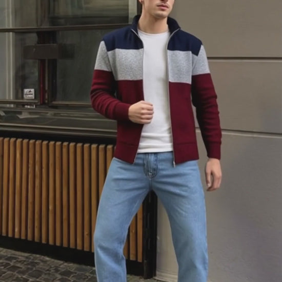 Mens Color Block Zipper Cardigan