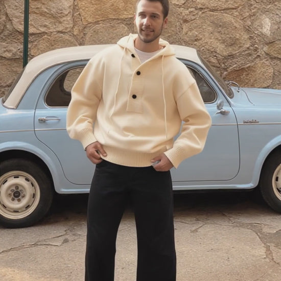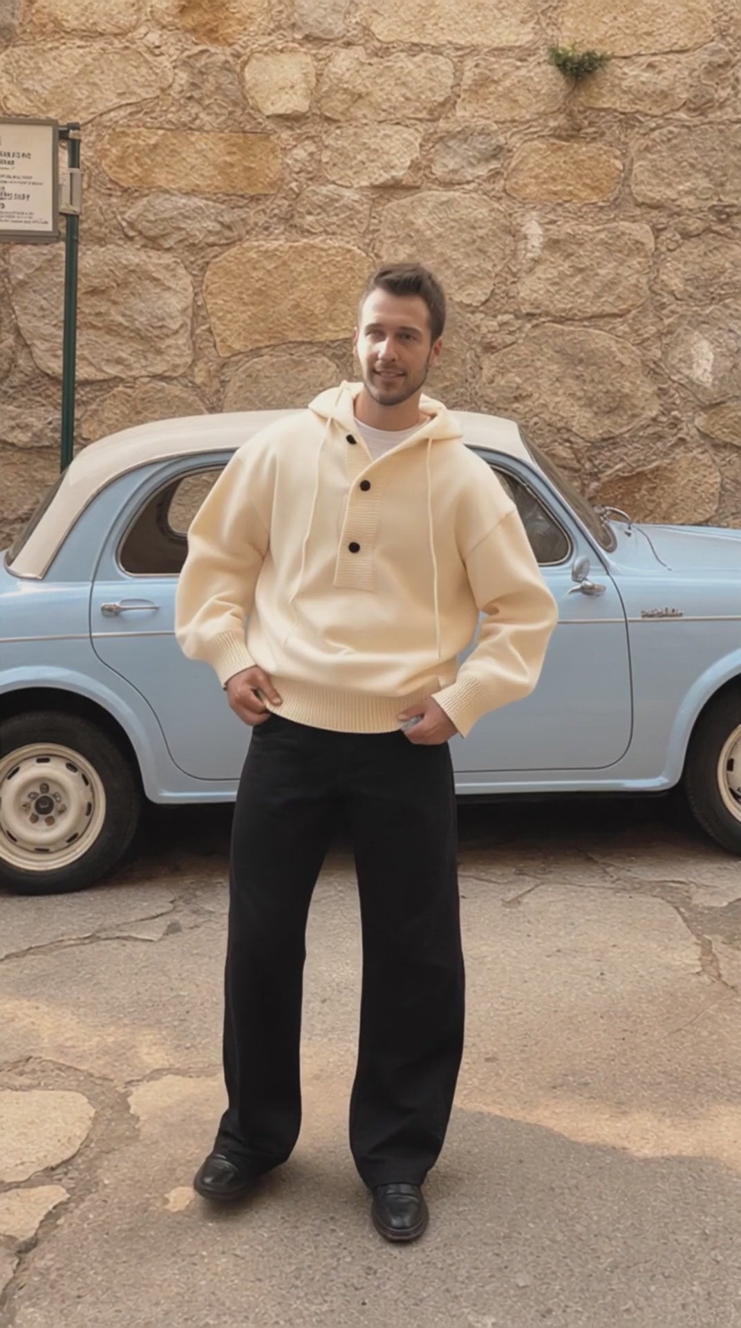 Available in sizes M to XL, the regular fit suits various body types comfortably. Crafted with durable materials, this sweater ensures long-lasting wear. Its button detail and drawstring hood add both style and practicality for all-season use.