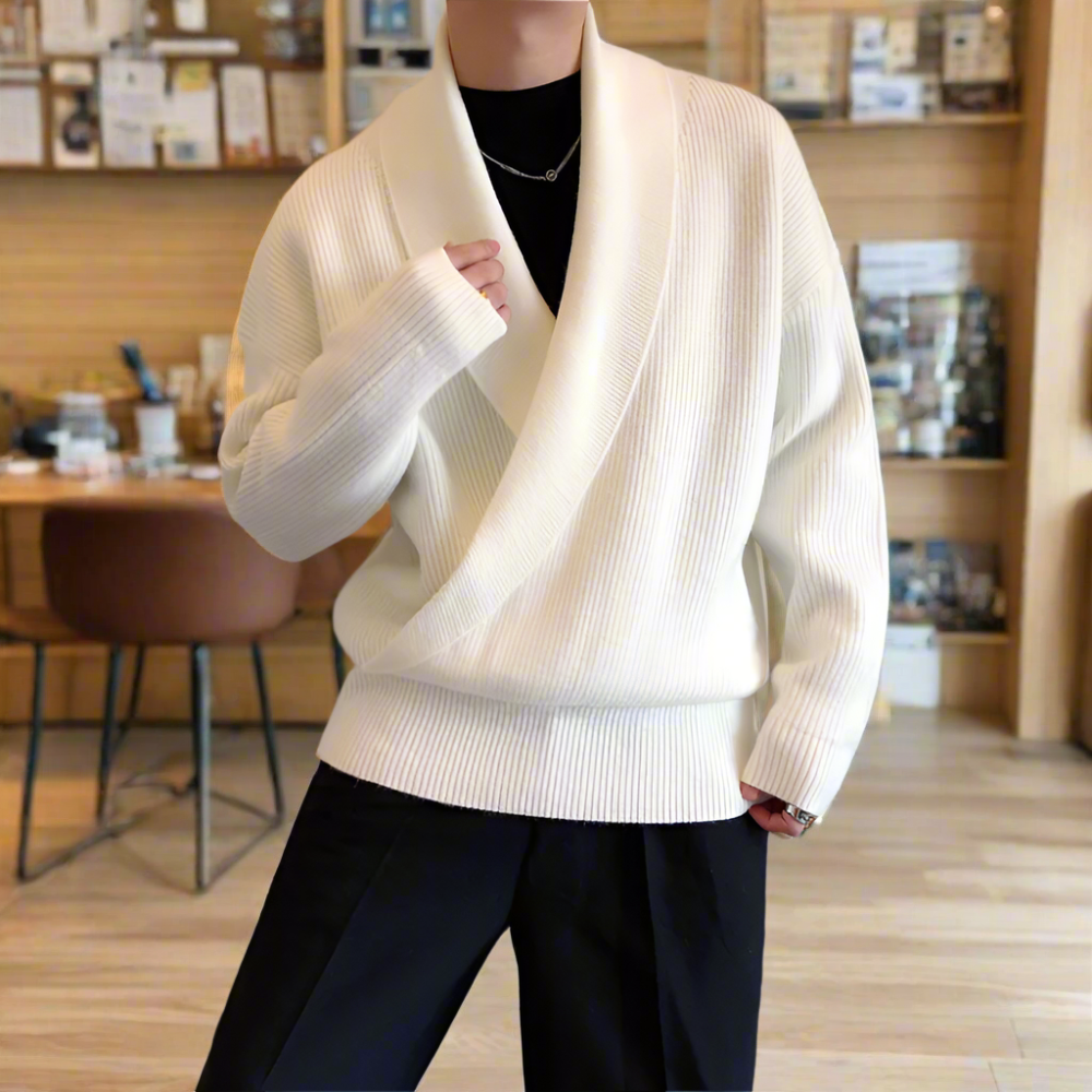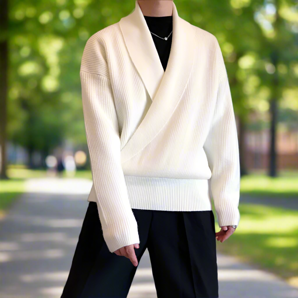 The Men’s K-Style Cross-Front Wrap Sweater combines K-pop-inspired flair with versatile comfort. Its trendy design and sleek fit make it a must-have for smart-casual looks, perfect for standing out with effortless style.