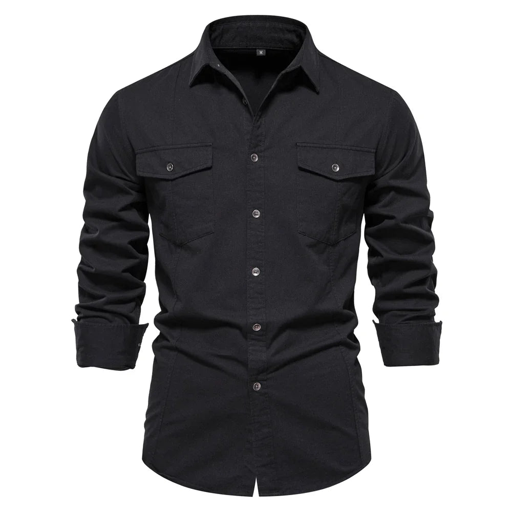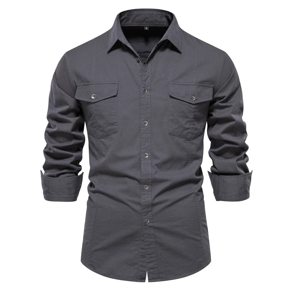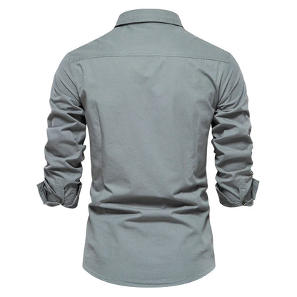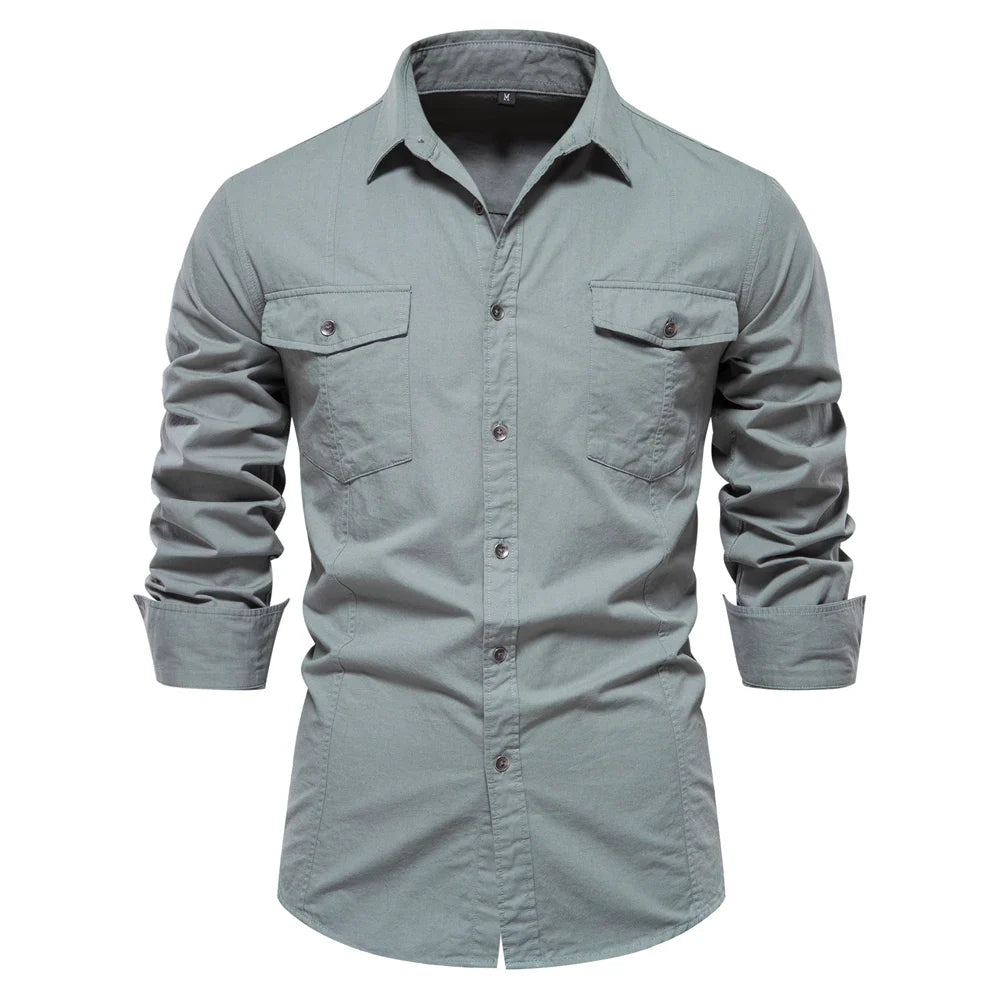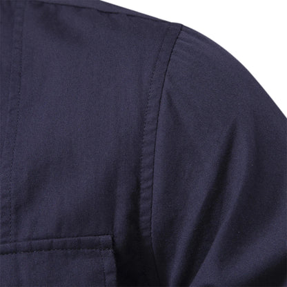 Stay stylish and comfortable with our Men's Long Sleeve Dual Pockets Military Shirt. Made from high-quality polyester material, this shirt features a classic military-inspired design with two front pockets for added convenience. The long sleeves provide extra coverage and warmth, making it perfect for both casual and formal occasions. Pair it with jeans or chinos for a versatile and on-trend look. Available in multiple sizes and colors, this shirt is a must-have addition to any man's wardrobe.