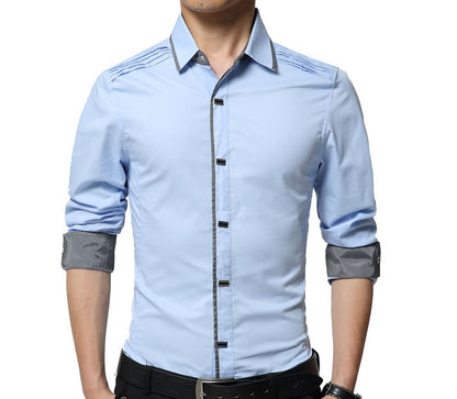 Mens Street Fashion Lineup. Casual Slim Fit Button Front Shirt with Button Details.