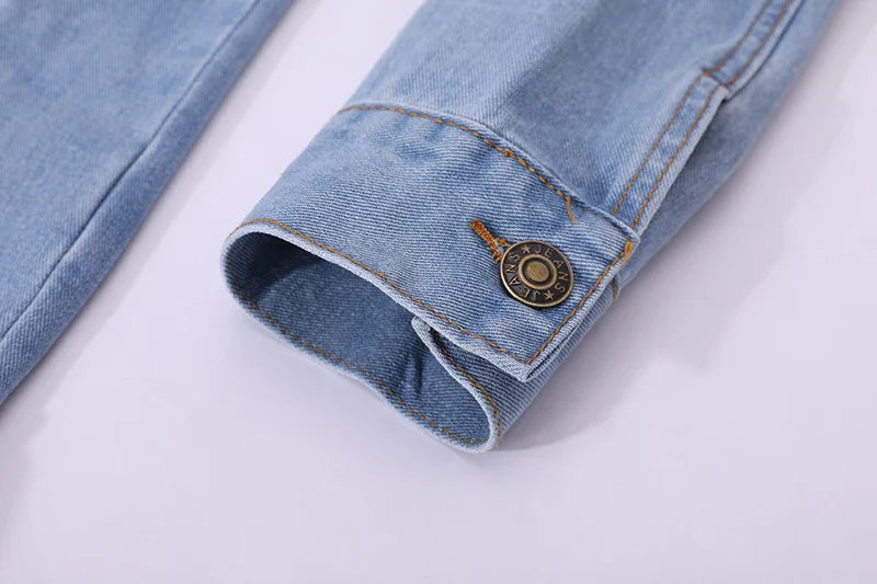 Crafted from high-quality denim, this jacket offers durability without compromising on comfort. The attention to detail—from the sturdy stitching to the robust buttons—ensures that this jacket will be a lasting staple in your collection. It's not just about looking good; it's about feeling confident in what you wear.