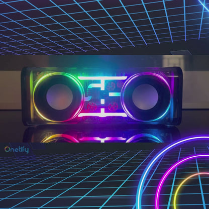 The Onetify LED Bluetooth Speaker delivers an immersive audio experience with its dual-speaker transparent design. Enjoy deep bass and clear high tones thanks to its advanced bass diaphragm technology, transporting you to a world of music.