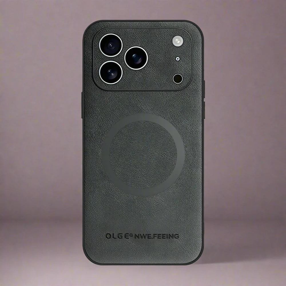 Vegan Leatther Magnetic charging compatible Phone Case for iPhone 13 to 17