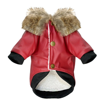 Waterproof Vegan Leather Jacket for Dog with Faux Fur Collar