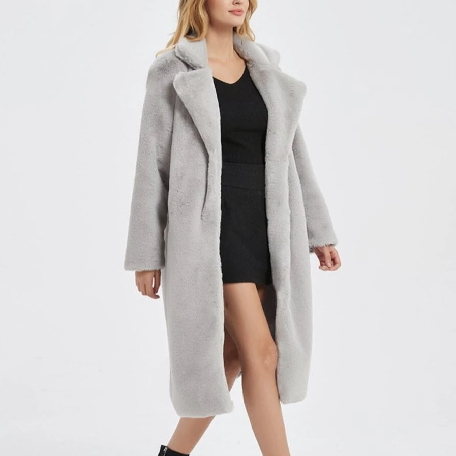 Elevate your wardrobe with this Womens Faux Fur Coat featuring classic notch collars. Designed to provide warmth and style, this coat adds a touch of luxury to any outfit. Its soft faux fur fabric ensures comfort while making a bold fashion statement, perfect for turning heads during colder days.