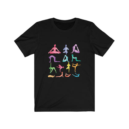 Yoga Poses Print Jersey Short Sleeve Tee fits like a well-loved favorite. Super soft cotton and excellent quality print makes one to fall in love with it over and over again.