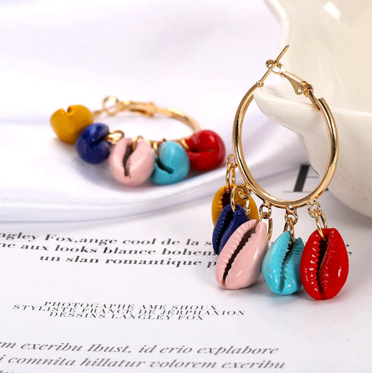 Colorful Seashell Hoop Earrings